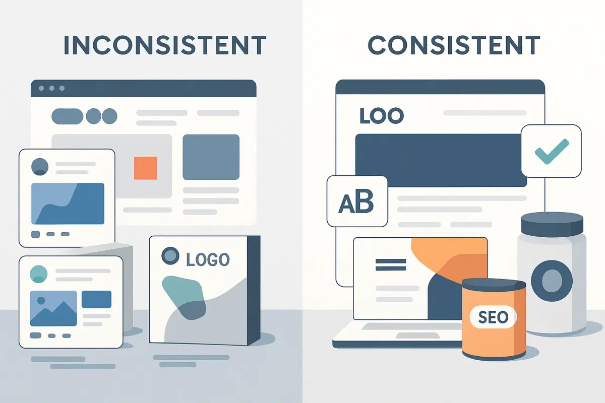 Humans rely on pattern recognition to judge credibility. Consistent colours, typography, logo usage, and layout signal stability. Flexibility still has a place—seasonal or campaign visuals can feel fresh while anchoring to signature elements (logo placement, core type, accent colour). Consistency builds recognition; intentional variation adds interest without breaking trust.