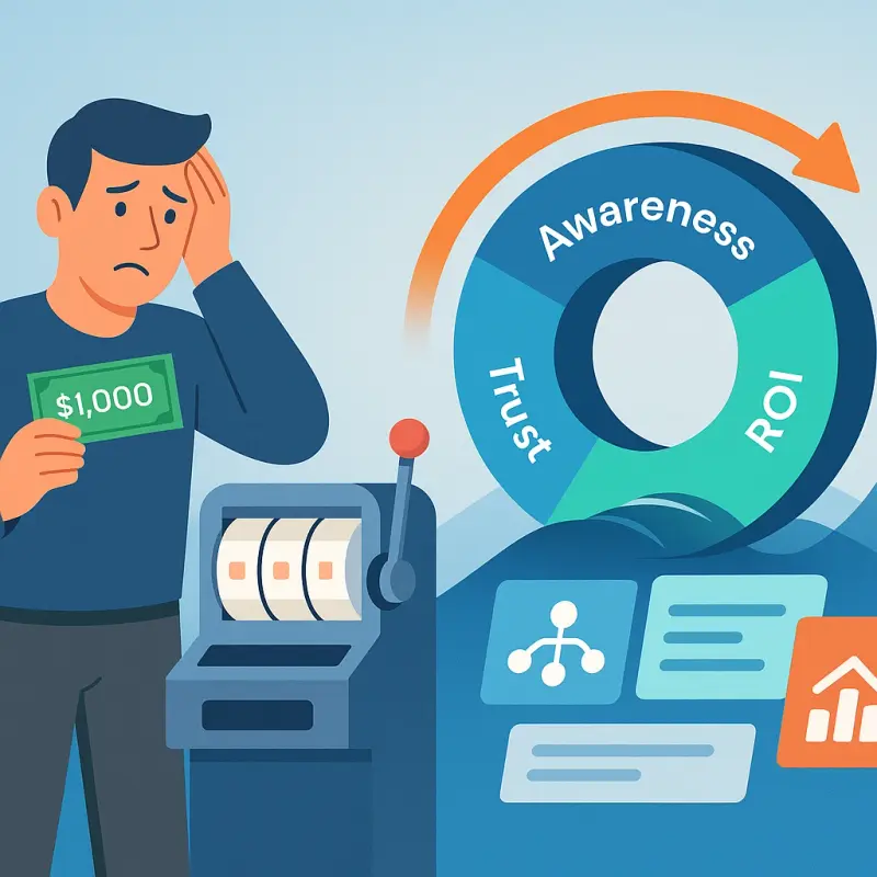 The belief: 'I spent $1,000 on ads - where are the sales?' Digital isn't a slot machine. Campaigns need learning time to refine copy, audiences, and offers. Results compound over time like a flywheel, not a quick gamble. Stopping early wastes potential momentum. Agencies know ROI is built sustainably, not overnight.